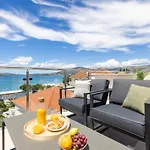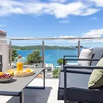 A tengerparti Apartments Ocrux Trogir körülbelül 25 percnyi sétára található a Szent Lőrinc Katedrálisól. Az apartmanban Wi-Fi és ingyenes privát parkoló is elérhető.
